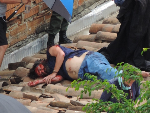 This scene was filmed two houses away from the same house he got murdered. Netflix tried to use the same roof Pablo used in December 1993, but finally the producers couldnt sign an agreement with the lady whos currently renting the original house.The production finally ended up leting next house for $4 Million pesos, close to $1.500 US.